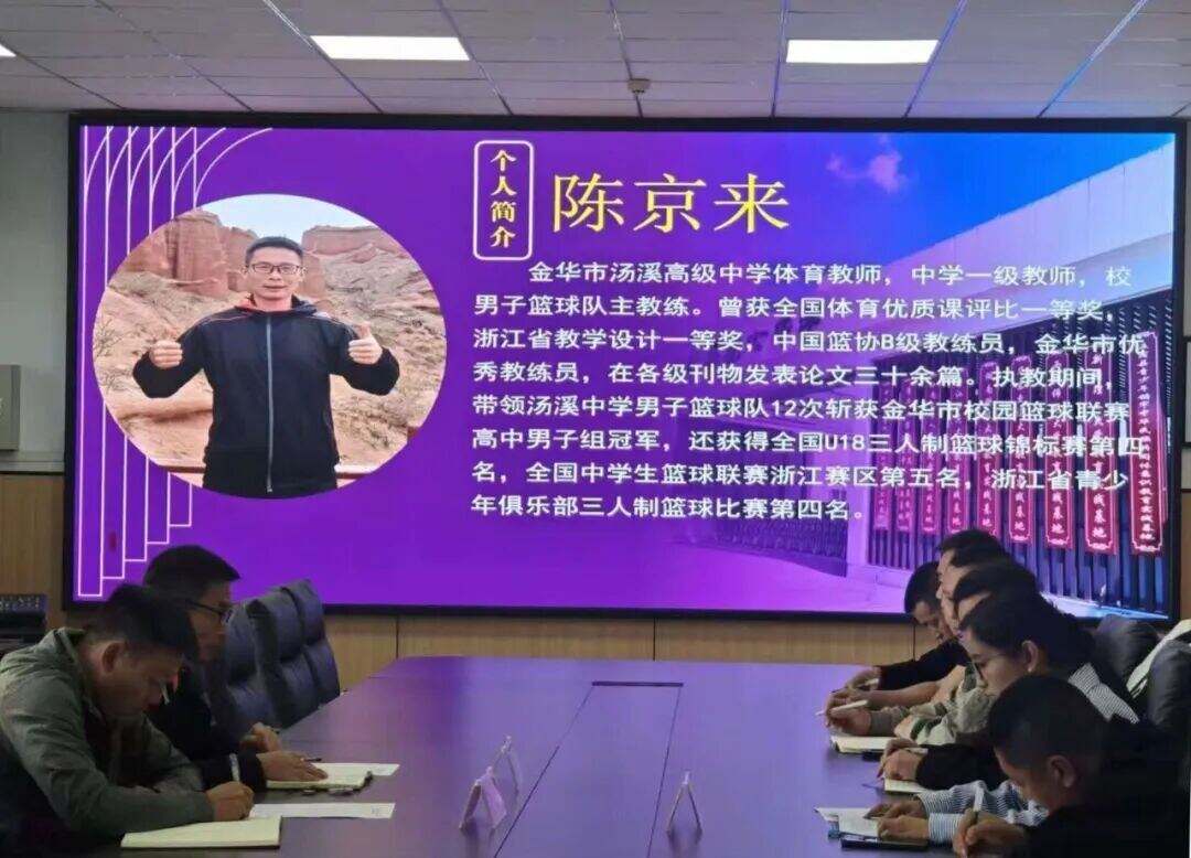 蒋凯老师以《新课标背景下的教学与训练思路转型》为题,结合浙江省课堂教学转型的实践经验,通过“示范课+评课”的形式,讲解足球“教学内容结构化+教学组织小组化+教法学法问题化+教学评价精准化 ”的课堂模式,强调“技术+体能+认知”融合发展的教学导向。陈京来老师则聚焦篮球教学,通过《高中篮球教学中“技术训练-体能发展-战术应用”的联动路径》专题报告,提出“四步教学法”(战术讲解-分组模拟-实战对抗-复盘纠错),帮助学生快速掌握技术要点,为破解校队“防守薄弱”问题提供实操方案。