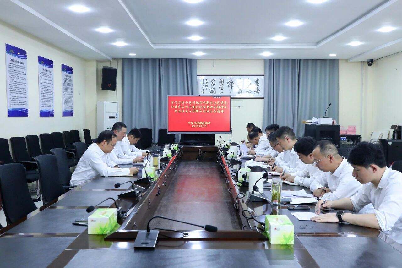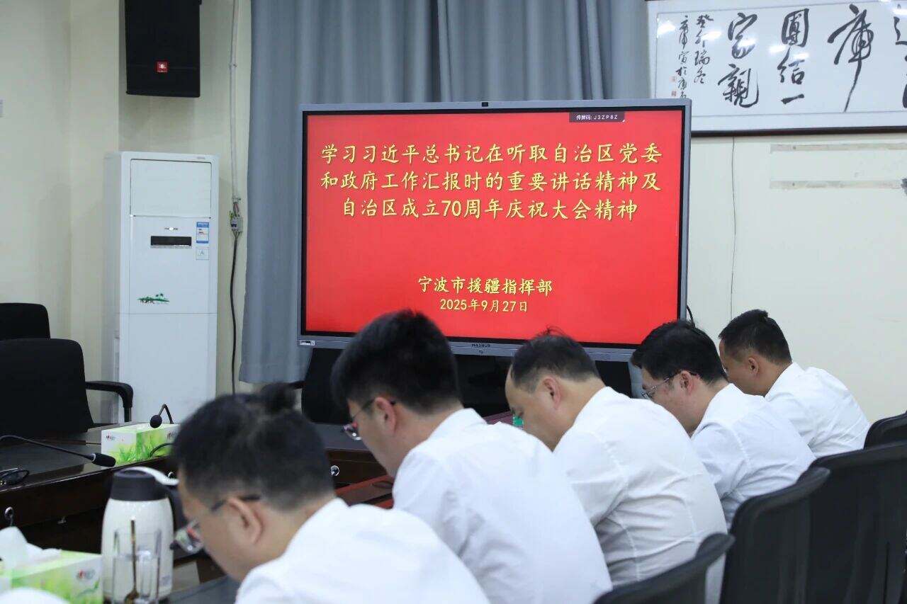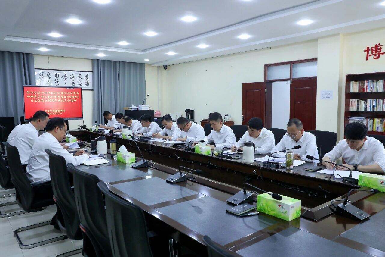 9月27日,宁波市援疆指挥部党委组织专题学习会,认真学习领会习近平总书记在听取新疆维吾尔自治区党委和政府工作汇报、亲自接见援疆干部人才代表时的重要讲话精神,指挥部党委书记、指挥长、库车市委副书记杨勇主持会议并讲话,全体援疆干部人才参加会议。