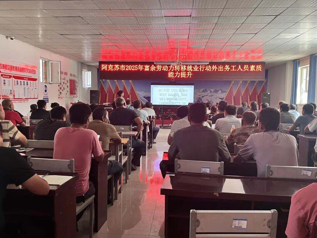 要实现稳定就业,能力提升是关键一环。在杭州市援疆指挥部的支持下,阿克苏市同步开展“劳动力素质能力提升培训”,聚焦务工常识、国通语应用、安全生产等实用技能,采用“理论+现场”教学,已培训80余人。这些培训为务工者快速适应新环境、保障自身权益打下了坚实基础,让他们带着技能和信心踏上赴杭之旅。