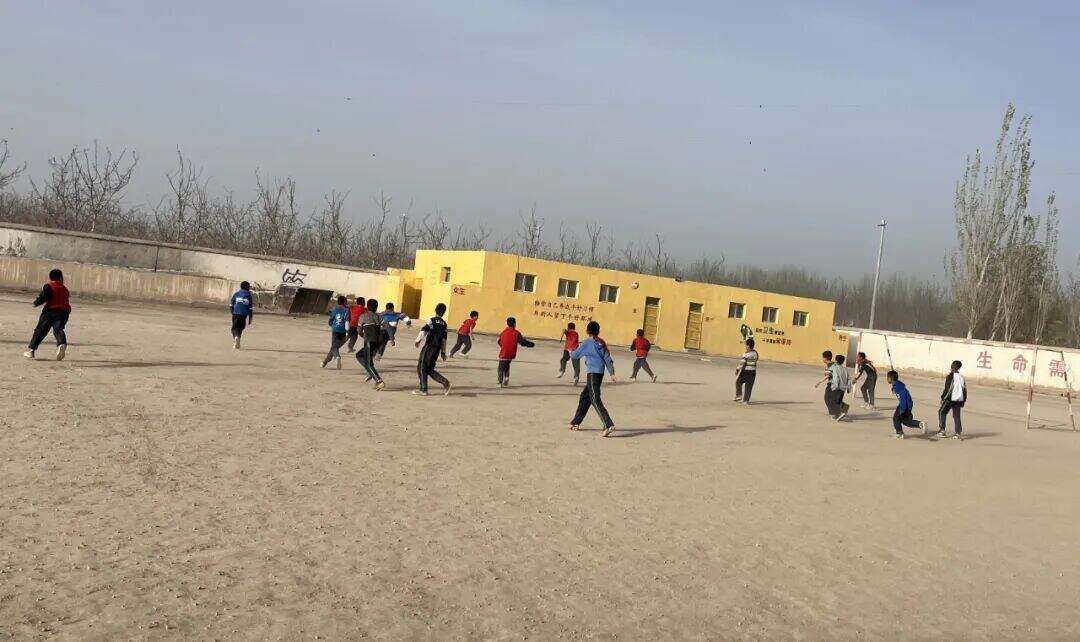 11月21日,在新疆温宿县托甫汗镇小学操场上,一群身着鲜艳校服的足球小将正激烈角逐。他们奔跑如风,传球精准,每一次射门都引得场边观众欢呼雀跃。这所学校的足球队今年在当地各类足球比赛中屡获佳绩,孩子们尽情享受着足球带来的快乐与激情。而曾经,这样的场景难以想象,之前的操场,是另一番模样。