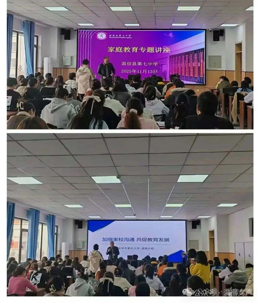 随后,贾侣康老师先后走进温宿县第七中学、第一中学,围绕“加强家校沟通 共促教育发展”主题,为400余名教师及家长持续作家庭教育专题讲座。针对家长普遍关切的“如何与青春期孩子建立信任关系”“学业压力下的亲子高效陪伴策略”等重点问题,为当地教师和家长提供了科学实用的家庭教育方法,有效助力提升温宿县家庭教育水平。