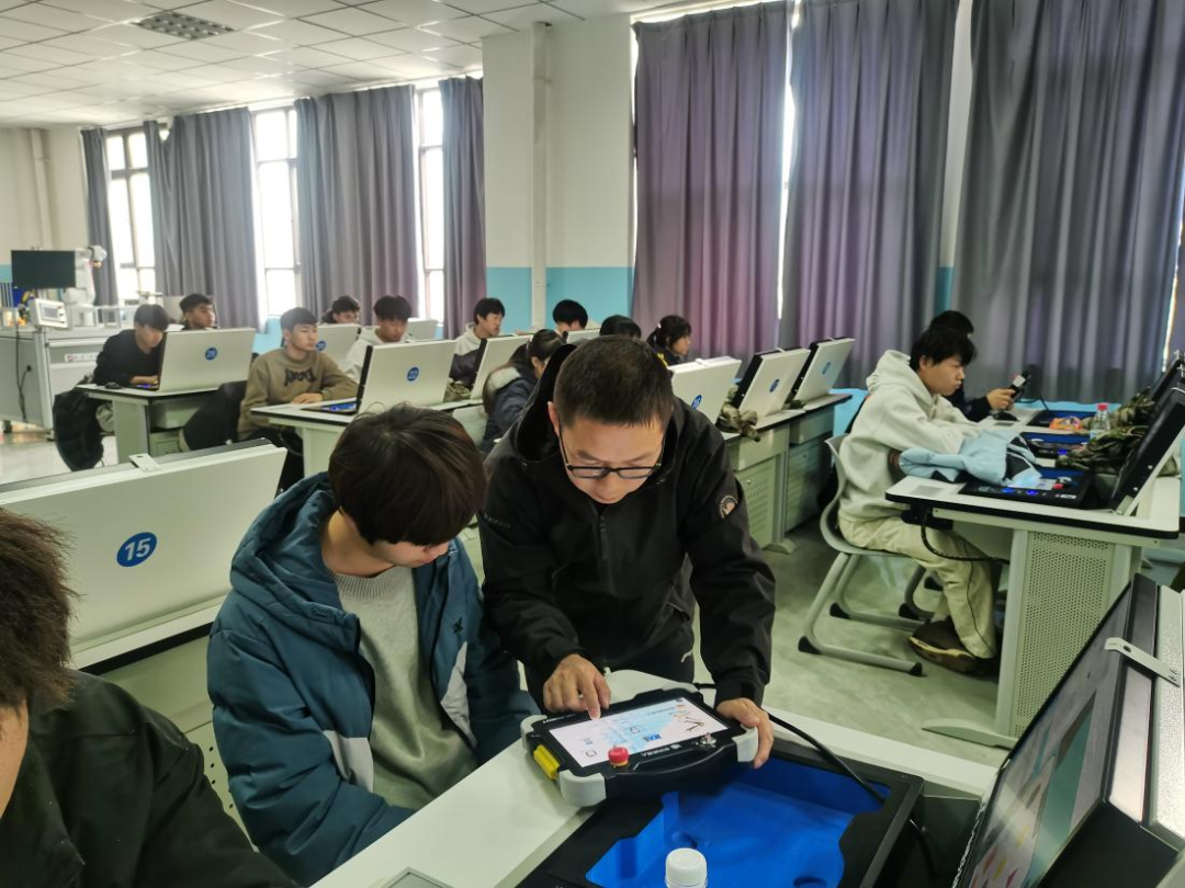 “讲台即阵地,教学即使命”,戴家平始终将教学质量视作援疆工作的生命线。他先后担任2401高焊班《机械制图》、2501中级焊接班《机械制造工艺基础》等多门核心课程的教学工作,面对学生基础参差不齐的现实难题,他俯身调研学情,化身“精准导航员”——自费购置制图工具筑牢实践根基,创新“理论精讲+示范引路+即时纠偏”的特色三维教学模式,将三维建模、虚拟仿真等数字化手段融入课堂,让抽象的机械原理变得直观可感,让枯燥的技能训练焕发生机,学生专业技能的提升肉眼可见。他创新教学实践,将课程思政与专业教学深度融合,开设《同绘一面旗齐唱一首歌——圆内接正五边形绘制》示范课,以“绘制国旗”为项目载体,将机械识图技能与爱国主义教育、民族团结理念有机结合,课堂结尾全体学生齐唱国歌的场景震撼全场,被听课教师评价为“课程思政融合的标杆课例”。