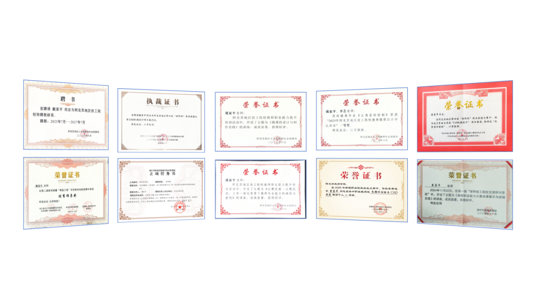 技能赛场是他检验教学成果的另一战场。他指导学生在“浙阿杯”CAD机械设计赛项中摘得两银、一铜,带领团队斩获新疆职业院校技能大赛机电一体化技术赛项团体三等奖。他本人在2026年新疆职业院校技能大赛“零部件测绘与CAD成图大赛”中勇夺一等奖,在第二届教育援疆“青蓝工程”学员教学技能竞赛中荣获优秀指导奖。申报的4项新疆职工优秀创新成果备受认可,以过硬实力诠释了“技高为师”的真谛。