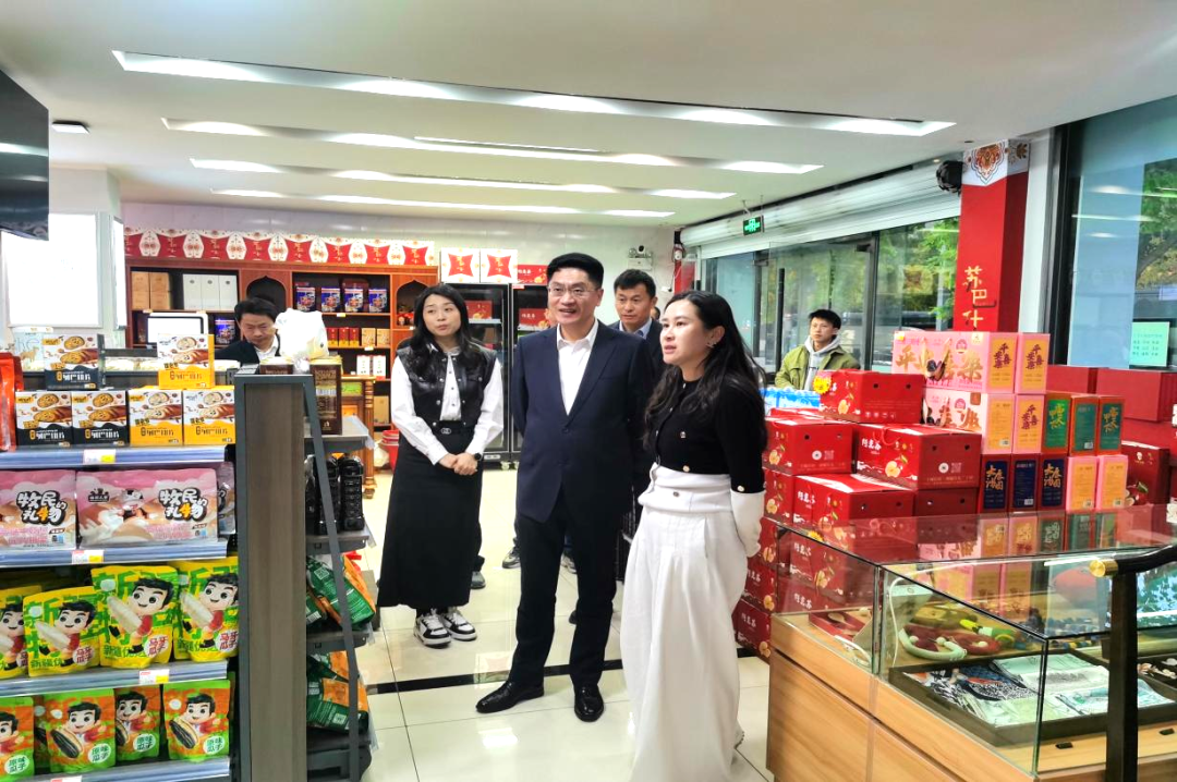 在杭州联华华商集团精品门店,调研组一行听取了企业在品牌焕新、门店拓展、专区建设等方面推进情况的介绍,了解了企业在冷链成本、仓储建设等方面的诉求。