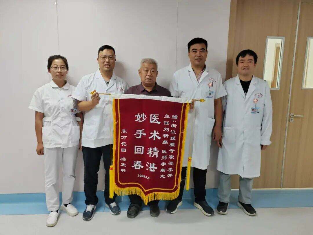 清晨的新和县人民医院康复走廊里弥散着淡淡艾草香。67岁的杨宪林拄杖而来,把绣着“妙手回春”的锦旗送给来自丽水市第二人民医院的援疆医生吴李秀。几个月前,他步履不稳、上肢屈曲难伸,经系统评估与针对性康复,如今已能独立行走,手臂与手指活动明显改观。这一刻,见证了“从不敢迈步到重新迈步”的改变。