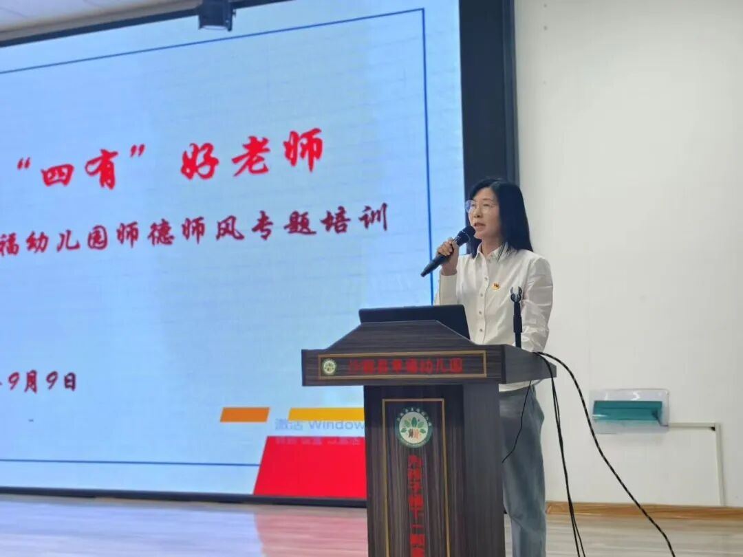 在幸福幼儿园,盛小英与团队积极践行“幸福教育”理念,致力于打造一座充满爱与关怀的成长乐园。她将师德建设放在首位,开展了《为师以德,做“四有”好老师》《坚守初心,做新时代幼儿成长的引路人》等系列培训,结合法规解读与案例剖析,引导教师将师德规范融入日常言行,筑牢育人初心。