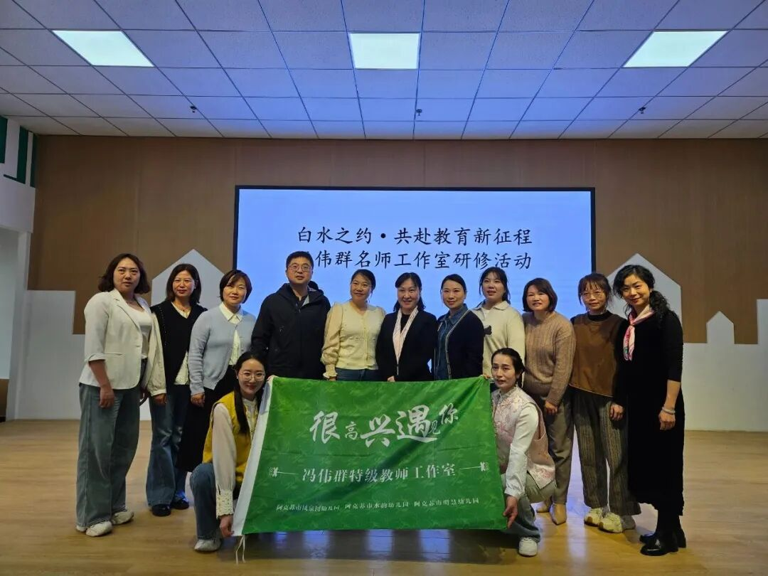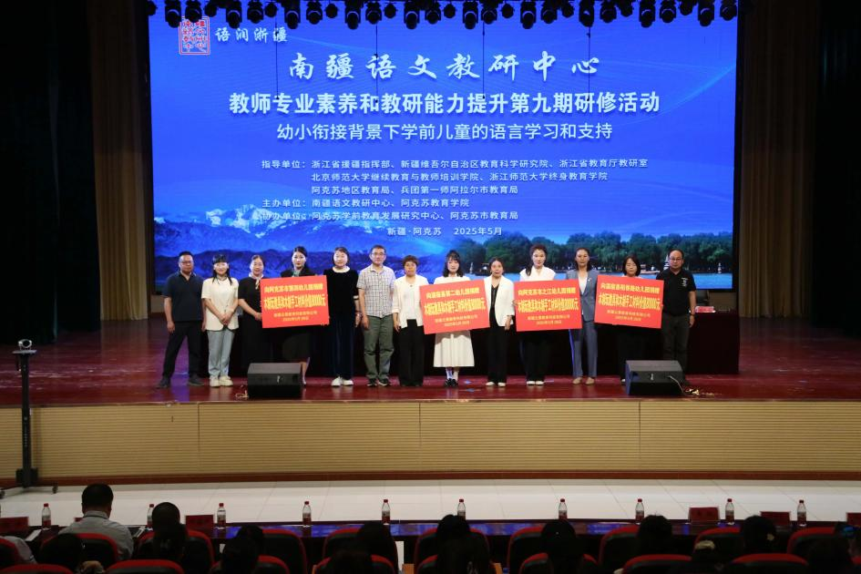 赵均榜始终牢记“桥梁纽带”使命,积极争取浙江后方支持,协调多家企事业单位向阿克苏捐赠价值120余万元的智能教学设备与玩教具,显著改善多所幼儿园办学条件。在他的推动下,“冯伟群名师工作室”在阿克苏市挂牌成立,成为浙江优质师资辐射边疆的重要平台。期间,他还邀请浙江师范大学王春燕教授等6位高校专家、10余位浙江省特级教师及教研员,通过线上线下结合的方式开展专题讲座、课程诊断与实地指导,让先进教育理念与实践智慧在阿克苏“落地生根”。