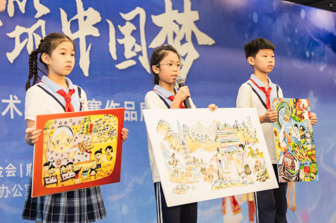 仪式上,温州市教育局、温州市援疆指挥部、温州市人民教育基金会、鹿城区教育局、温州市温商慈善基金会等相关单位领导为获奖学生代表颁奖。获奖学生现场分享了创作心得,其作品或描绘新疆壮美山川,或勾勒江南灵秀风光,以纯真视角表达了对中华文化的热爱与认同。