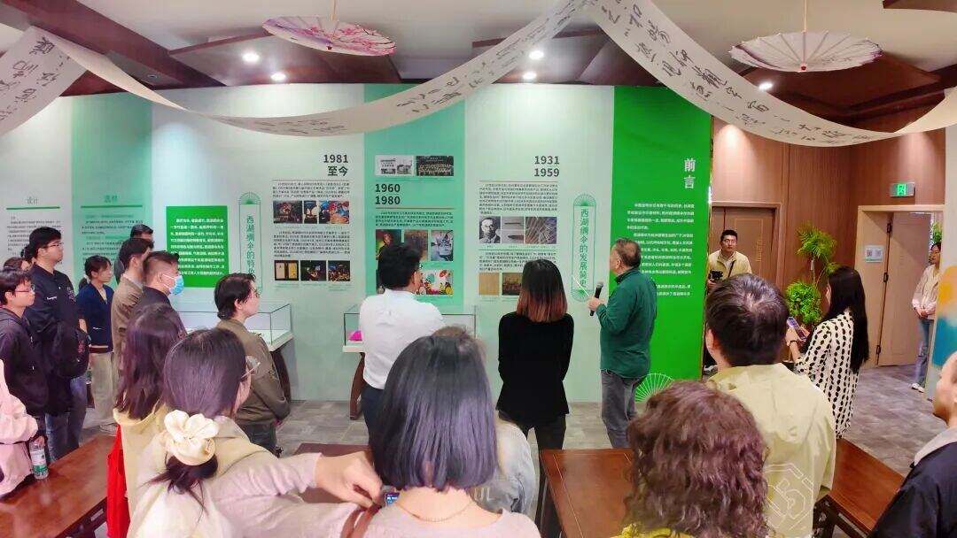 为增强观众体验,展览现场特别设置了非遗互动体验区,让参观者能够在动手实践中感受传统手工艺的匠心独运。宋志明大师在现场进行讲解交流,帮助观众更深入地理解西湖绸伞的文化底蕴。