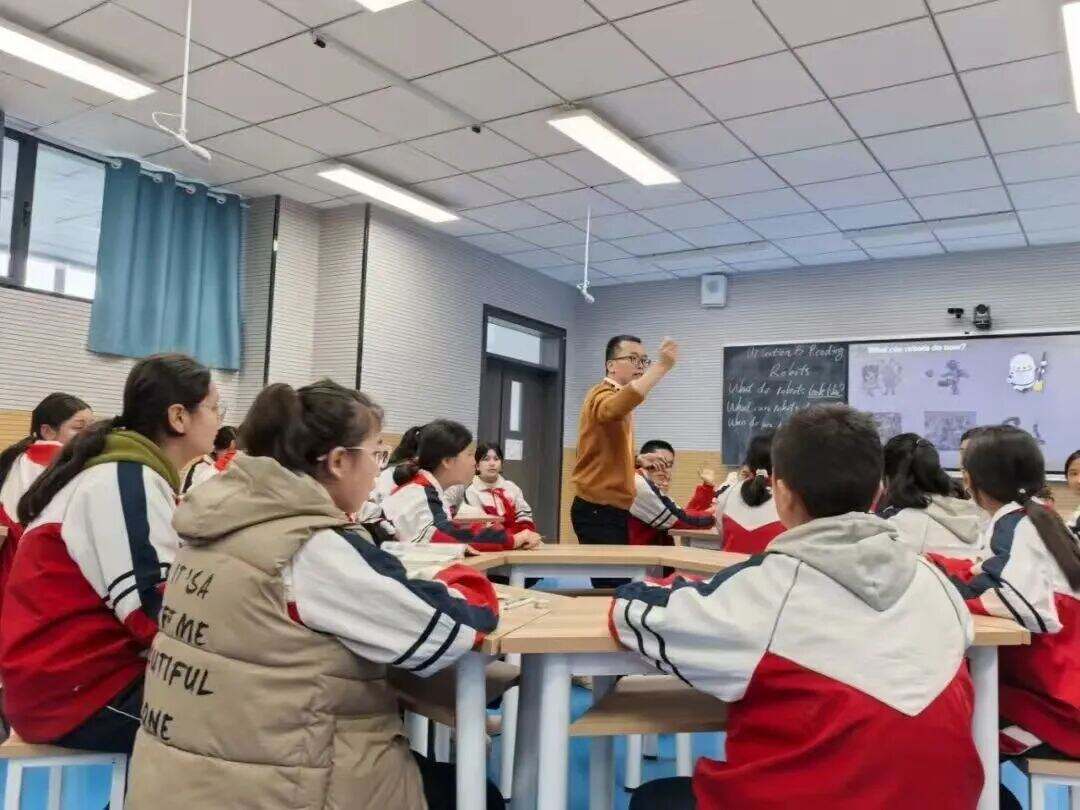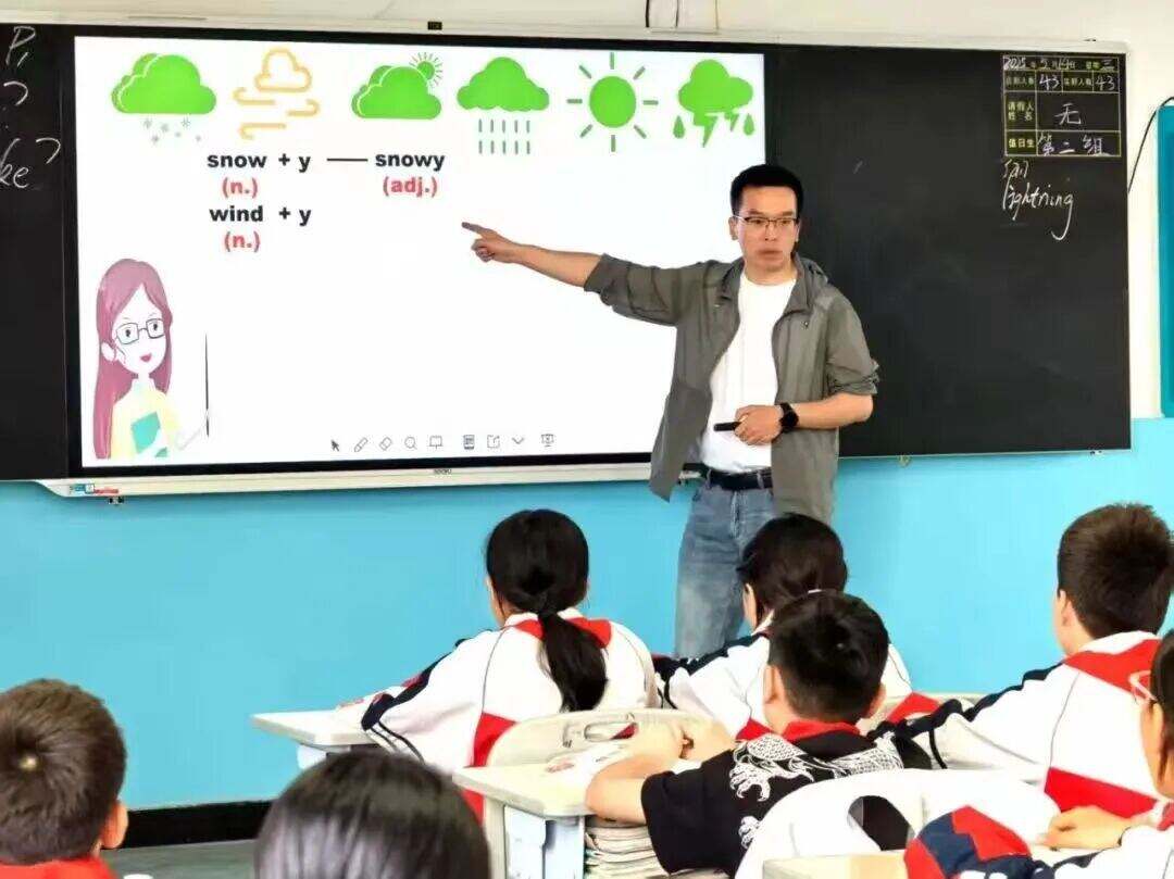 在援疆支教过程中,刘国造对“教学相长”有了更为真切的体会。为提升教学质量,激发学生学习兴趣,他精心筹备每一堂课。本学期的一节示范课上,他别出心裁地以气象主题英文短视频开启课堂,瞬间点燃了七年级(6)班学生的参与热情。在教学方法上,他采用“词汇筑基—句型建构—对话生成”的三阶进阶模式:运用生活场景词汇卡和动态思维导图,为学生夯实语言基础;通过角色扮演和信息差任务,促进句型内化;最终以分层对话设计实现语言输出。这种闭环教学设计,既遵循语言习得规律,又契合学生的认知发展阶段。 这堂示范课凝聚着他对“智慧课堂”的深入思考:AI技术搭建的沉浸式语言环境,如同为孩子们打开了一扇通向世界的任意门;分层对话设计既遵循语言习得规律,又符合认知发展曲线。当看到青年教师们反复回看课堂实录,他深知,这些创新实践正唤醒更多教育工作者的教育觉醒。