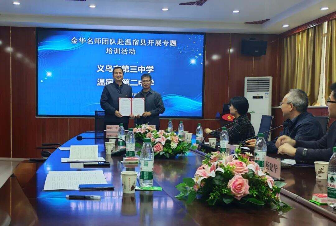 活动首日上午,温宿县第二中学与金华市汤溪高级中学、义乌市第三中学正式签订教育发展共同体建设协议。这一重要举措,标志着三校合作迈入制度化、常态化新阶段,为后续管理互通、师资共建、教研共享、文化共融的深度协作奠定坚实基础,奏响了东西部教育携手并进、共谋发展的崭新乐章。