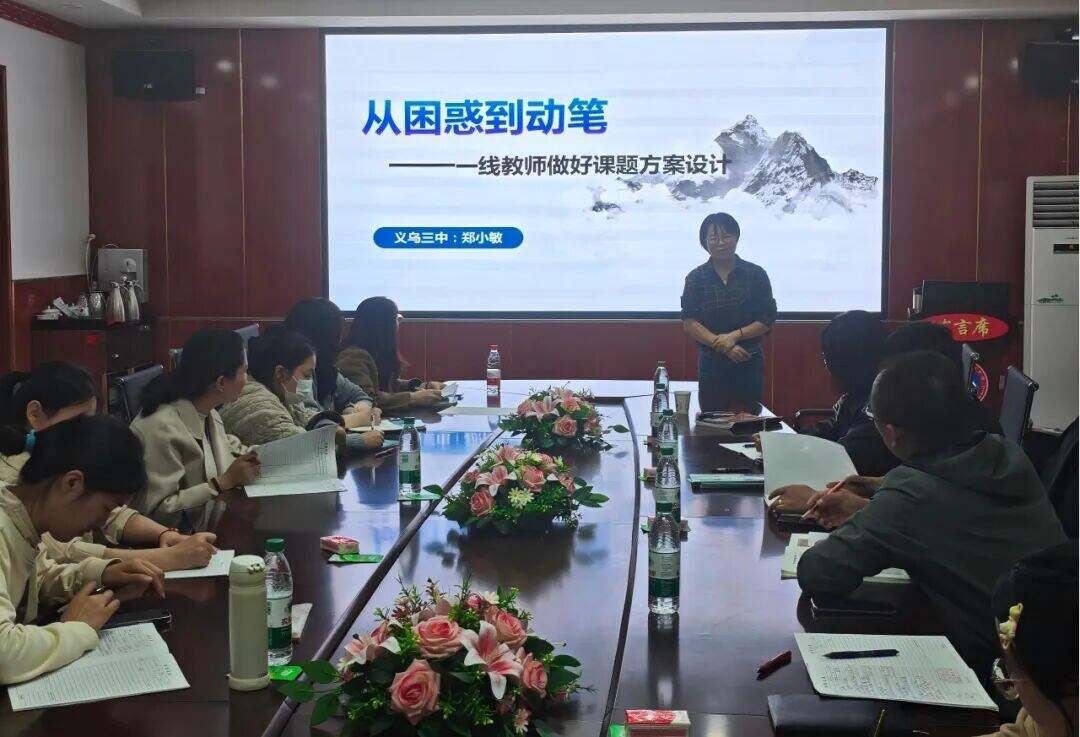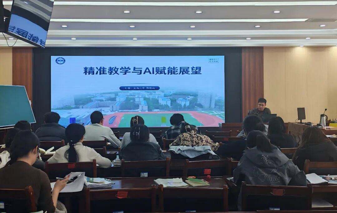 开展的专题讲座聚焦教育科研与前沿技术应用,为教务教研人员注入新动能。义乌市第三中学金国良老师以《课程、课题、文化—— 做一个教育与科研的行动者》为题,从一线教师视角出发,生动讲解如何将教学困惑转化为研究课题,如何培育积极向上的课程课题文化。同校的陈佳山老师带来《精准教学与 AI 赋能展望》分享,具体探讨 AI 技术在学情分析、个性化辅导与教学决策中的应用,为教师打开了未来教育的新视野。