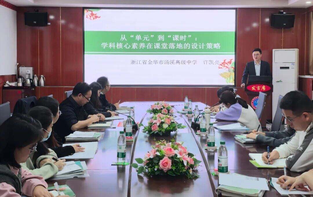 在生物分会场,温宿二中刘彩霞老师的《植物生长素》以实验为引,课堂教学生动直观;金华市汤溪高级中学许凯亮老师的《生物有共同祖先的证据》善于构建证据链,逻辑严密、启发性强。课后研讨中,两地老师深入交流教学心得。许凯亮老师《浅谈指向大概念的课时教学与单元整体教学的有效对接策略》专题讲座,为生物教师整合教学内容、构建知识体系、提升课堂效益指明了实践方向。