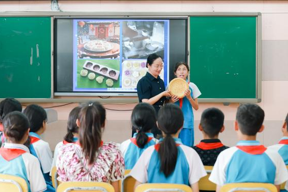 随后,她又与绍兴北海小学对接,开展了“糕馕‘新食代’”的云端活动。通过视频连线,两地学生共探“南米北面”饮食成因,分组展示文化探秘、制作实践成果,利用AI技术创新包装,以直播带货推介美食,在交流体验中传承非遗,推动地域文化交融与创新。