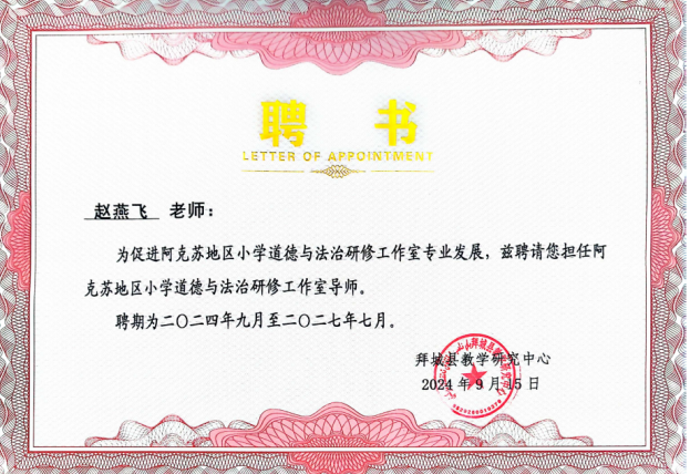 作为援疆教师,赵燕飞老师始终秉持初心,躬身践行。她在课堂上辛勤耕耘,播撒知识的种子,更借助“青蓝工程”搭建起传帮带的桥梁,让优质教育的微光在边疆聚力成炬。身为一名道德与法治教师,她不仅让所带班级的学科成绩稳居同年段前列,更将如何助力受援地更多教师打造高质量道法课堂,作为长期思考与实践的核心方向。
