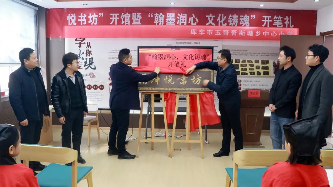 12月19日,在宁波市援疆指挥部的支持下,库车市玉奇吾斯塘乡中心小学建设的甬库悦书坊开馆。这是甬库两地干部、教师和学生建设的第五座“阅读+书法”教育平台。