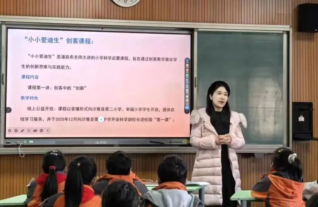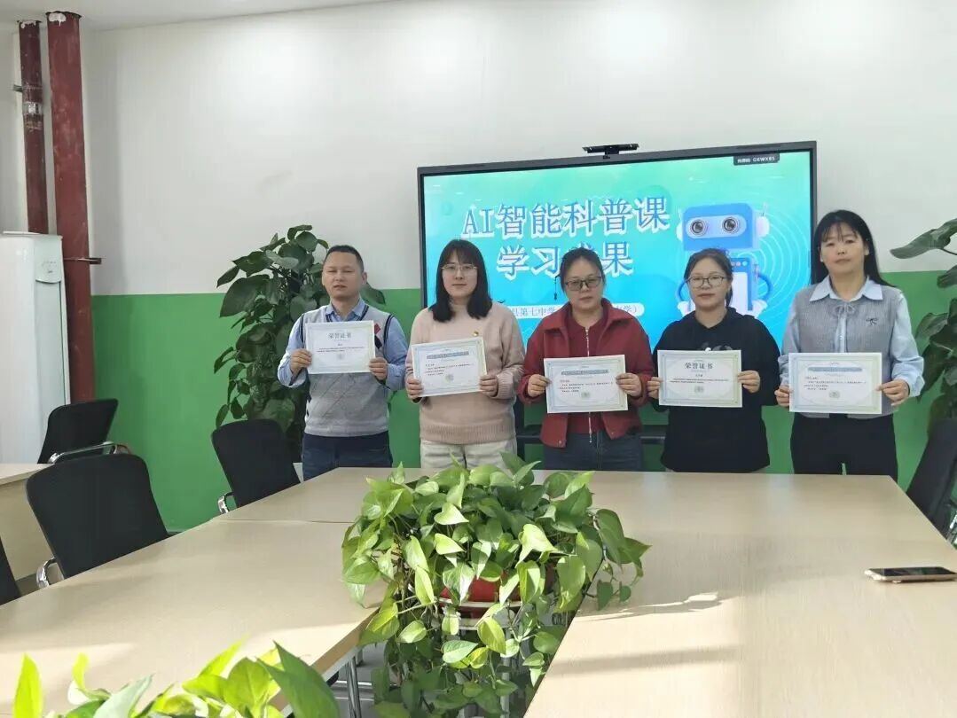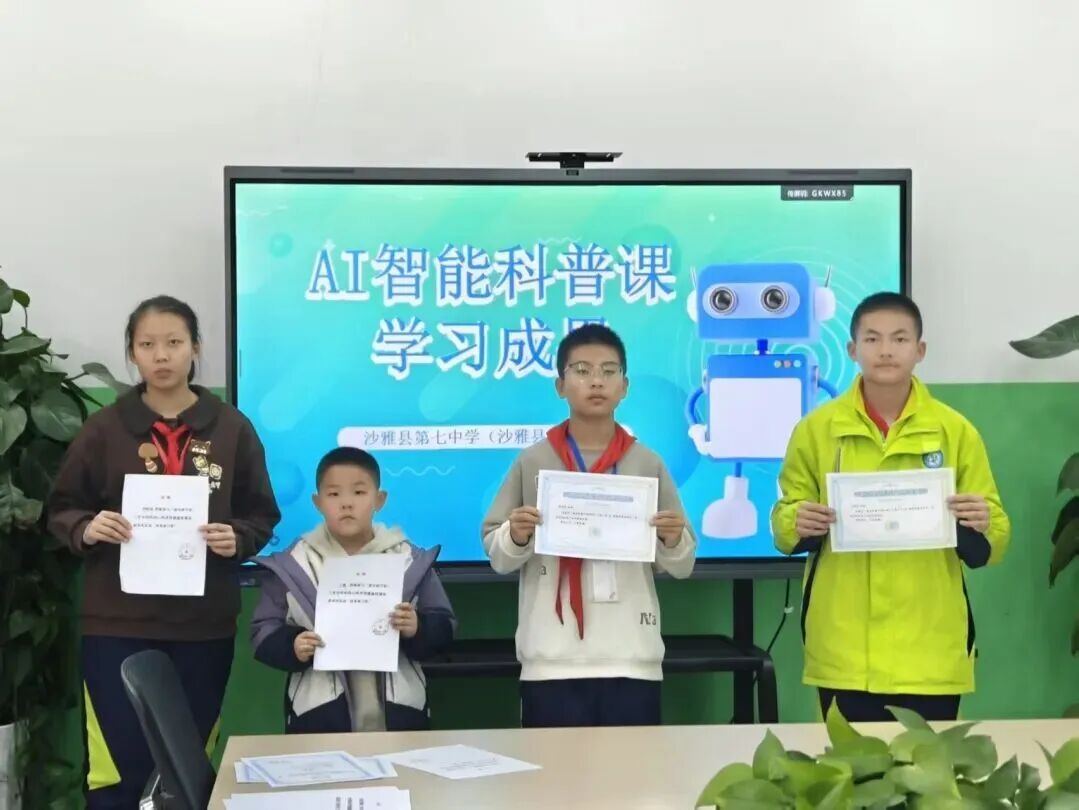 之后,潘老师通过远程在沙雅二中、沙雅七中师生中多次开设AI智能科普课程和讲座。2025年12月,在线上AI智能科普课程学习中,12位“嘉中研学坊”工作室的老师、16位凤桥镇中心小学同学、9位沙雅县第七中学同学,获“嘉中研学坊”工作室颁发的“优秀参与奖”,其中8位工作室老师、12位凤桥镇中心小学、4位沙雅县第七中学的同学出色完成线上AI综合实践的任务,获得AI智能科普活动综合实践证书。