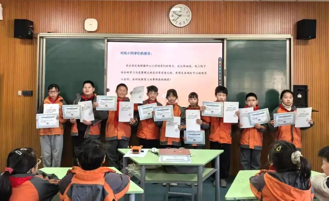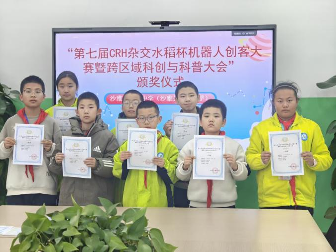 2025年10月,在CRH杂交水稻杯机器人创客大赛的创客智造类(“创客-思”普及赛)的评比中,沙雅县第二中学、沙雅县第七中学、沙雅县第二小学、凤桥镇中心小学共获奖74人,其中获省级一等奖11人、省级二等奖20人、省级三等奖43人;“嘉中研学坊”工作室主持人、科学副校长潘路希老师荣获本次大赛“优秀指导教师奖”,沙雅二小课程助教税丽娟老师,凤桥镇中心小学课程助教朱旭樱老师均获大赛“优秀科普志愿者”,沙雅七中李元桃老师在指导孩子创新的过程中也有不俗的成绩。在两批省赛作品的评比中,凤桥镇中心小学因在2025年的“CRH杂交水稻杯”赛事中表现突出,荣获大赛“优秀组织单位奖”。此外,“嘉中研学坊”工作室在“CRH杂交水稻杯机器人创客大赛”的师道争锋评比中成绩突出,工作室核心成员共16人获奖,其中潘路希老师的机器人作品获“CRH杂交水稻杯”创客-思项目评比省级一等奖,周世泽老师的“植物保姆”教学案例获“CRH杂交水稻杯”跨界融合创新教学设计赛省级一等奖。2025年11月,沙雅二中周世泽和陈红才老师的“植物保姆”教学案例代表新疆展区参加中国教育创新成果公益博览会。与本研究相关的嘉兴市级陶研课题“科海逐梦:基于‘嘉沙协作’小学生素养培育的‘科教融合’实践路径研究”已于2025年12月底成功结题。