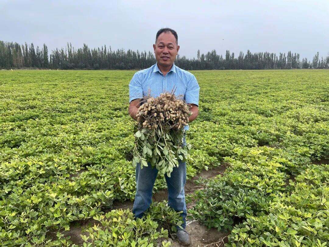 “2024年,我们把种植面积扩大到3000亩,宁波市援疆指挥部时常邀请李付振老师过来指导,亩产在600-800公斤,总营收超过500万元。今年,我们还没开始收花生。不过,从花生的长势来看,收入应该会超过去年。”
