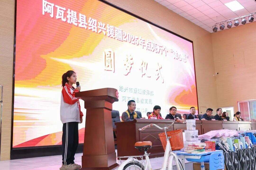 金秋送爽,情暖棉城。2025年10月10日,在市援疆指挥部的统筹推进下,“阿瓦提县绍兴援疆2025年点亮万个‘微心愿’圆梦仪式”在阿瓦提县鲁迅中学报告厅举行。中国狮子联会浙江大禹服务队、浙江省慈善义工协会大脚印团队爱心代表,以及受助学校师生、家长代表近200人欢聚一堂,共同见证了一场由绍兴援疆牵线、汇聚绍阿深情的爱心接力。县委常委、政府副县长、绍兴市援疆指挥部党委委员、副指挥长杨骅参加仪式并讲话。