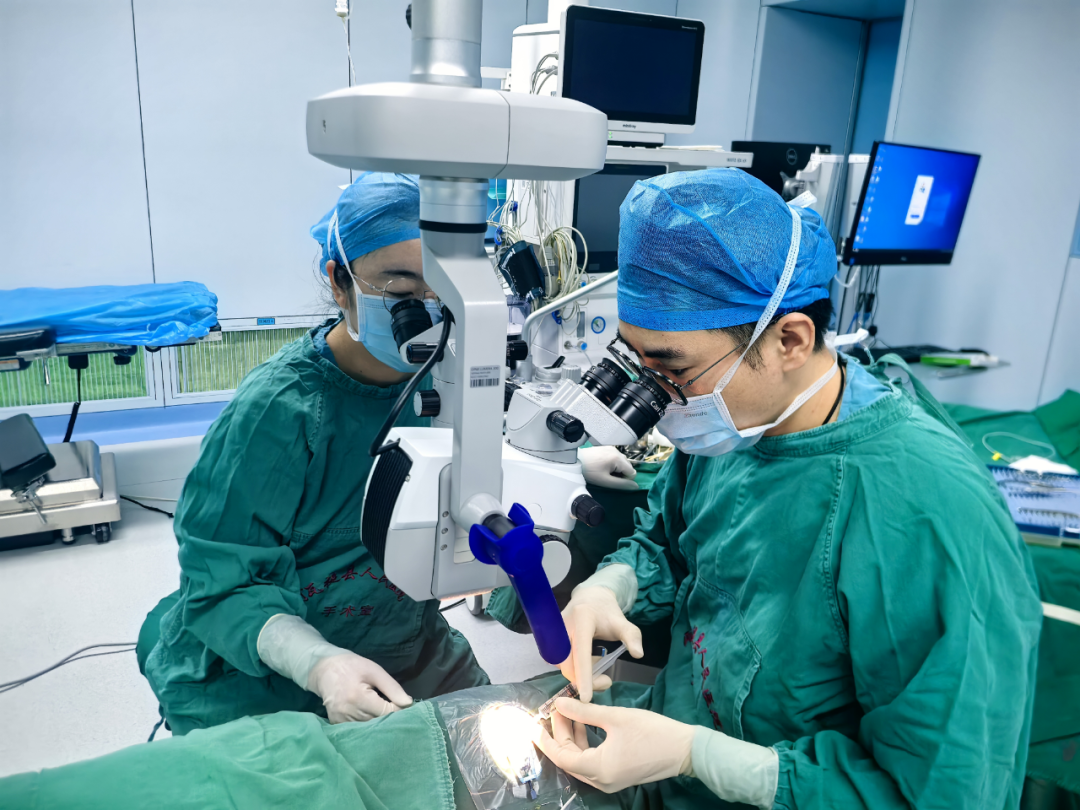 据了解,患者艾大叔(化名)在家中劳作时不慎被异物溅入左眼,导致“角膜裂伤、眼内异物合并前房积血”,视力急剧下降,情况危急。此类眼外伤若处理不及时,极易引发感染、白内障、视网膜病变甚至失明。关键时刻,绍兴援疆专家、现任阿瓦提县人民医院五官科副主任医师沈江迅速启动应急救治机制,带领科室团队协同手术室、麻醉科等多部门,在最短时间内完成术前准备,为患者施行“眼球裂伤缝合术+眼内异物取出术+前房成型术”。