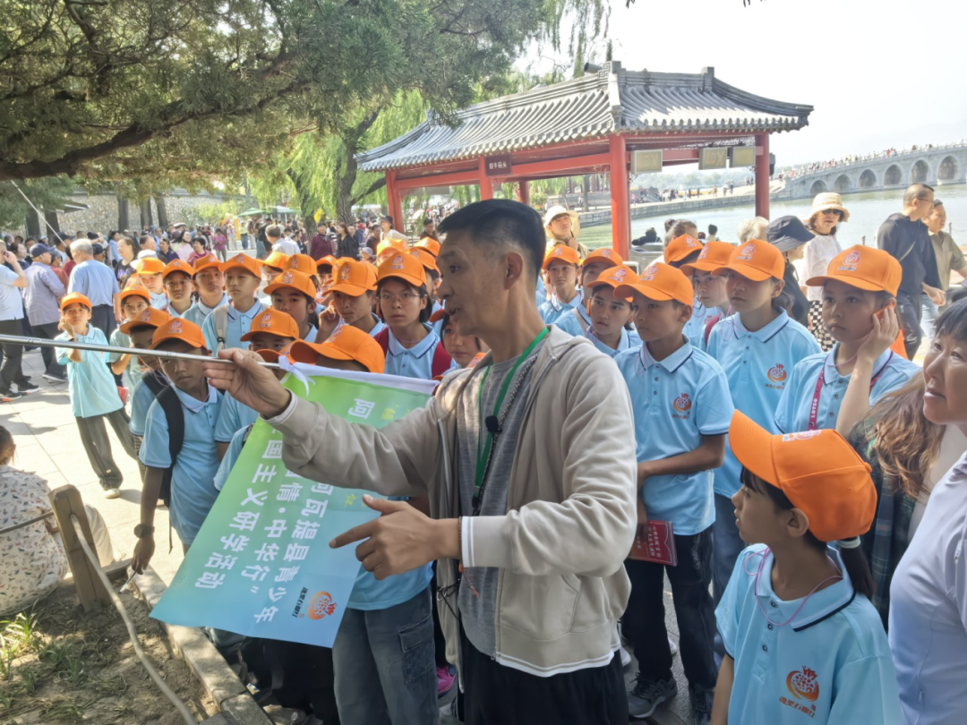 这不是一次简单的观光。启程前,绍兴援疆教师们已将文化的种子悄然播下。在颐和园,孩子们化身“长廊解码官”,“通过亲手测量廊柱尺寸,我直观感受到了古代工匠的精湛技艺与工匠精神。”一名学生边记录边感慨道。昆明湖的波光与古建的飞檐,让学生们真切触摸到中国古典园林的艺术灵魂。
