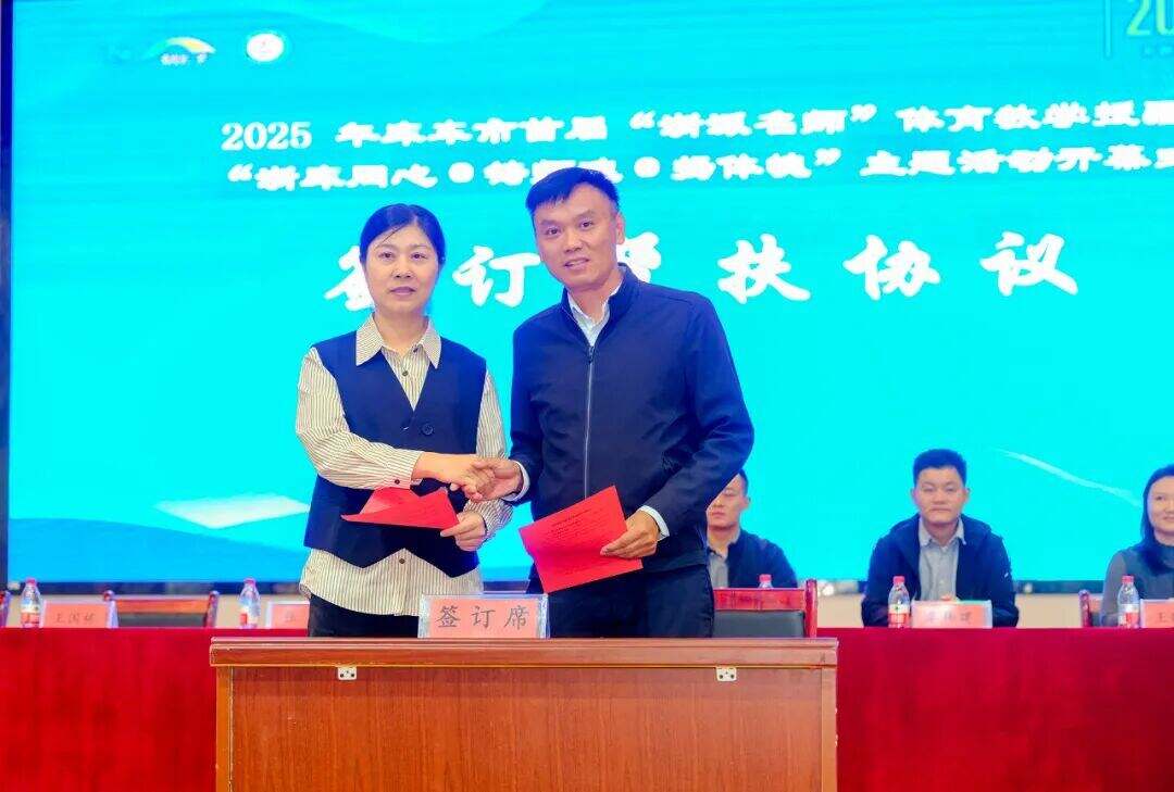 开幕式上,浙派名师小体班代表朱无忧与阿克苏地区中小学体育研修工作室主持人、阿克苏市教育局体育教研员王国栋签订帮扶协议,双方约定在师资培训、教学资源共享、课题研究指导、名师工作室建设、学生交流活动等方面开展合作,引进浙江省先进的体育教学理念、方法和管理经验,推动阿克苏地区中小学体育特色发展。