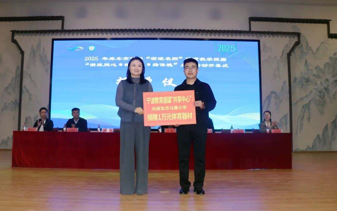 此外,2024级浙派名师小体班、宁波“图影时代”工作室、宁波教育援疆“共享中心”分别向库车市第十三小学、玉奇吾斯塘乡中心小学和乌尊镇中心小学捐赠价值两万元的体育器材。