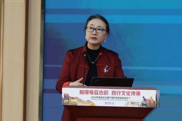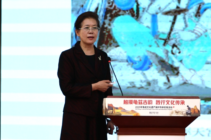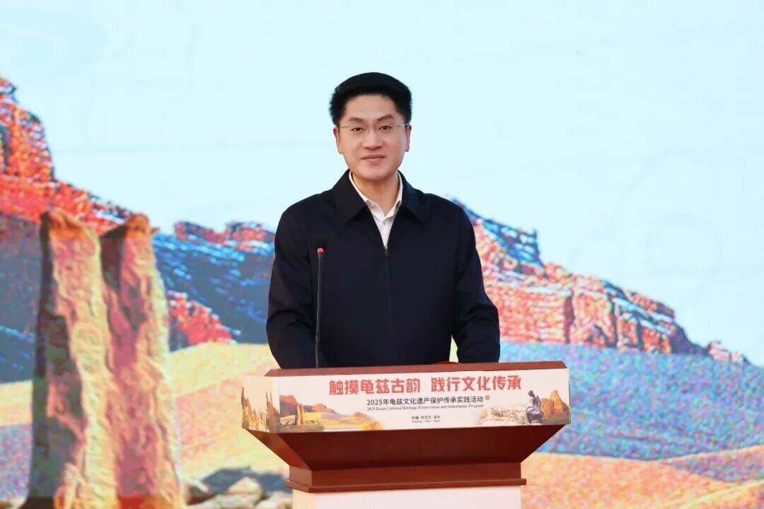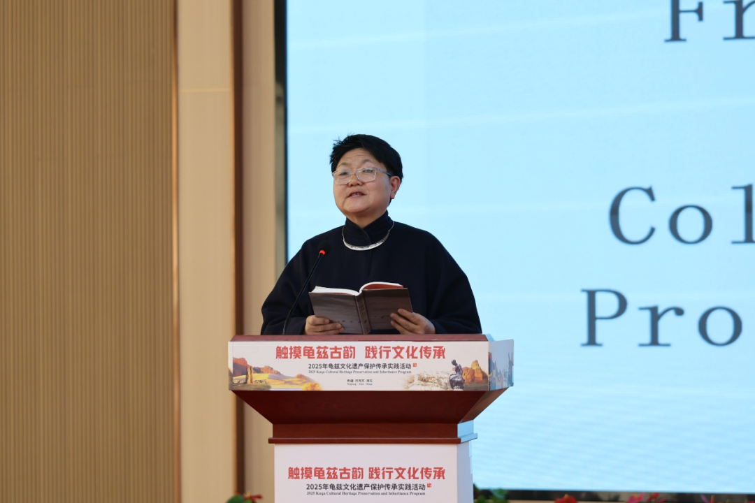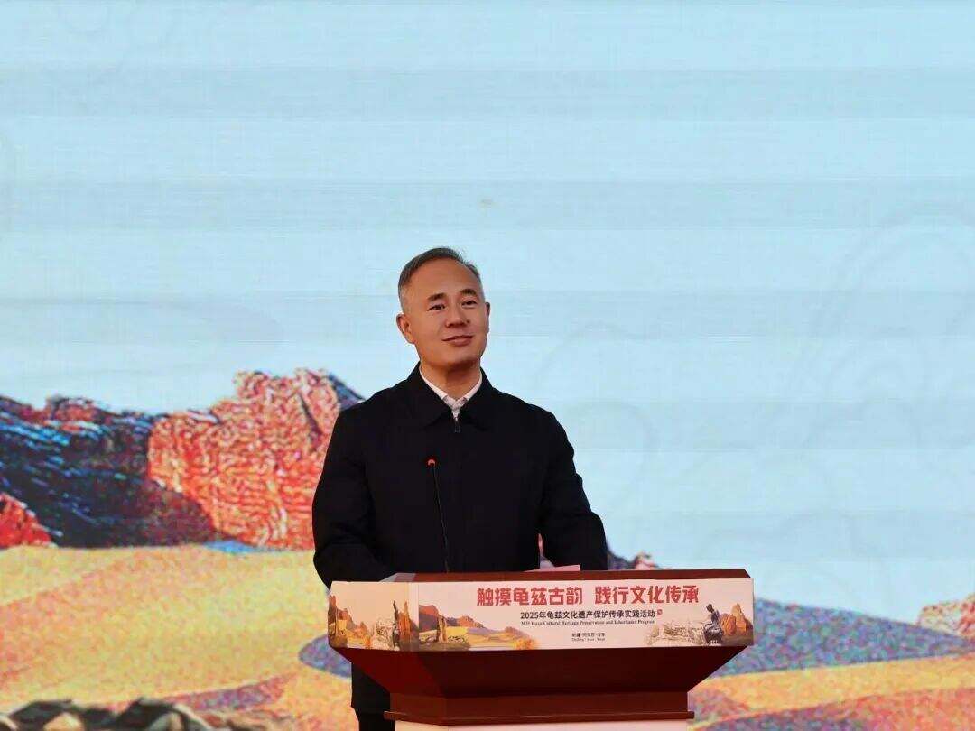 吴红展在致辞中表示,龟兹文化源起古丝绸之路,兴于汉,盛于唐,深深植根于中华文明沃土,是中华文化多元一体格局中的璀璨瑰宝,不仅为传承弘扬中华优秀传统文化提供了有力支撑,也为研究新疆历史与丝路文明提供了鲜活样本,更以历史相沿、人文相关、根脉相连的史实印证了“新疆自古以来就是伟大祖国不可分割的一部分”,彰显出独特的文化价值和深远的政治意义。本次活动,是进一步挖掘龟兹文化精神内涵,让这份千年文明更好彰显文化自信、增进文化认同的生动实践,也是让中华文脉在新时代焕发新光彩的具体举措。他希望更多人能了解龟兹文化、感知龟兹文化,与我们一同书写龟兹文化传承发展的时代新篇,助力中华文明薪火相传。