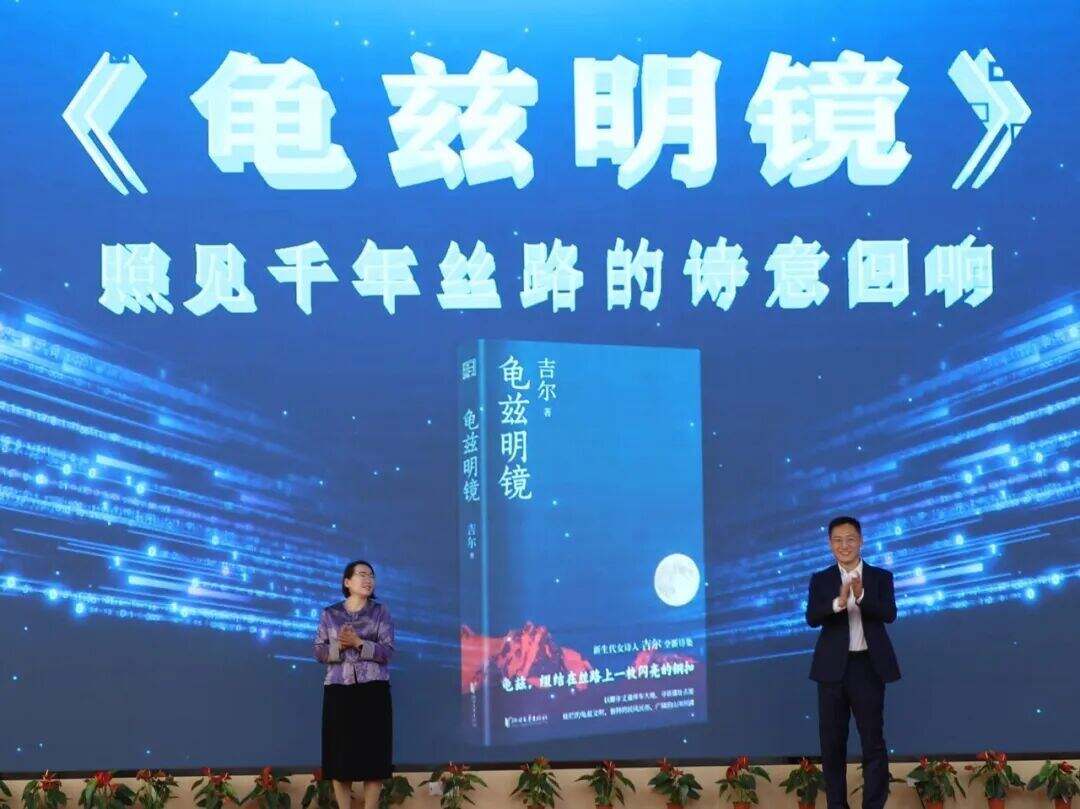 随后,阿克苏地委副书记、库车市委书记李晨阳与库车本地作家吉尔共同为新书《龟兹明镜》揭幕,标志着这部承载龟兹文化记忆的作品正式与读者见面,为龟兹文化研究增添了新的学术成果。《龟兹明镜》是一本书写古龟兹地区历史文化人文景观的诗歌集,是吉尔和当地的文物专家寻访了这片大地上的遗址古迹、文化遗存写下的一本诗集。