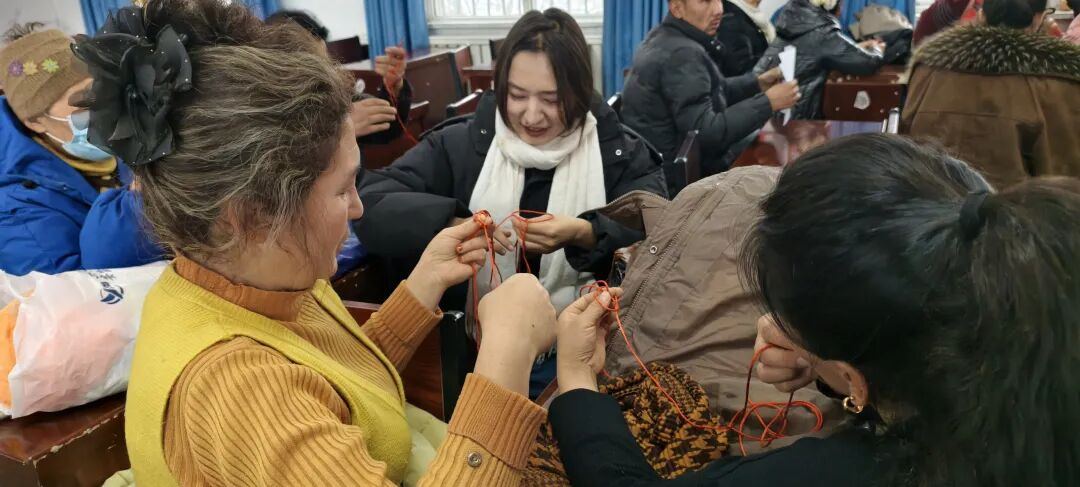此次研制的“民族团结好运同心结”紧扣“五心同行”品牌内涵,“守初心”“润民心”“践仁心”“筑匠心”“秉公心”的“五心”寓意赋予其时代内涵,“同心”则诠释了“各民族像石榴籽一样紧紧抱在一起”的深刻内涵。“这批制作精良的同心结将纳入当地2026年春节惠民大礼包!编织过程中,中华文化如丝线般织进大家心里,不仅提升妇女技能,更在潜移默化中铸牢中华民族共同体意识,实现‘增收’与‘润心’双成效。今后将持续深化金温协作,推动‘巾帼工坊’向手工艺品、装饰品、日用品等领域延伸,为妇女提供更多适配岗位。”温宿县妇联党组书记、副主席龚爱华介绍。