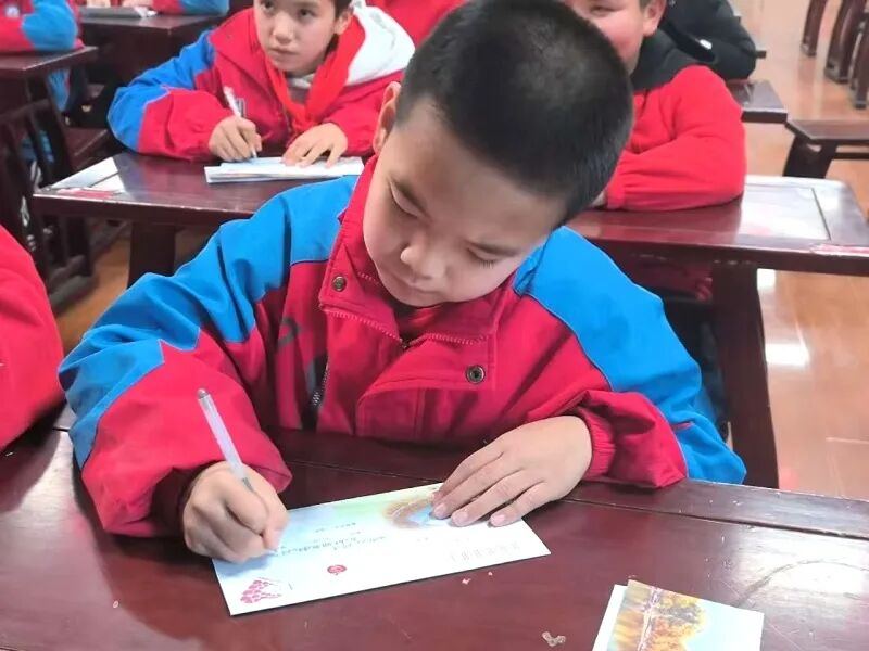 1月15日,沙雅县第五小学的学生在给浙江省平湖市新埭中心小学的结对小伙伴写信。何成印 摄