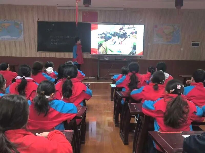 1月15日,沙雅县第五小学的学生通过“空中课堂”和浙江省平湖市新埭中心小学的学生一起学习。何成印摄
