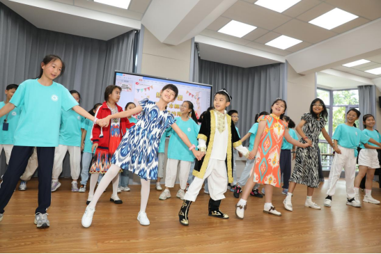 在杭州的校园中,阿克苏的孩子们聆听到柔美婉转的江南童声,杭州的学子则感受到维吾尔族歌舞的炽热与欢快。两地儿童共唱一首交融的歌、同跳一支友谊的舞、齐绘一幅同心的画。当“颗颗芽”唱起杭州民众耳熟能详的《梦想天堂》时,在场师生无不动容——“我们的家,住在天堂,碧绿的湖水荡漾着美丽的梦想……”熟悉的旋律牵起了相隔千里的心灵。