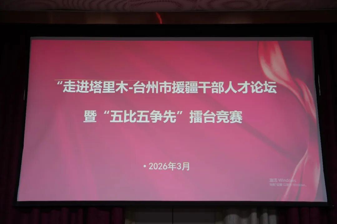 近日,台州市援疆指挥部举办“走进塔里木——台州市援疆干部人才论坛”暨“五比五争先”擂台竞赛。本次活动将“讲”与“赛”有机结合,以“登台展风采、比拼砺精兵”的方式,营造互学互鉴、比学赶超的浓厚氛围,激励干部人才在互学互鉴中凝聚奋进力量,在比学赶超中锤炼过硬本领。