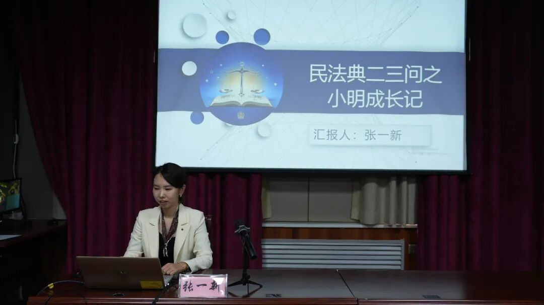 第一师政务数据中心副主任张一新以《民法典二三问之小明成长记》为主题,用“案例+互动+法条”的形式,围绕《民法典》中与个人成长、家庭生活、社会交往密切相关的法律问题,为干部人才带来了一场内容丰富、形式生动的普法授课。她以主人公“小明”的成长经历为主线,串联起民法典与日常生活息息相关的多个条款,用10个贴近生活的法律热点,用“小切口”讲出“大道理”,用“身边事”讲透“法理事”,将抽象的法律条文转化为鲜活的生活故事,让法律不再是冰冷的条文,而成为可感知、可运用、可守护权利的有力工具。在互动环节,干部人才踊跃提问,围绕自甘风险规则、夫妻共同债务等问题展开热烈讨论。现场气氛活跃,交流深入,充分展现了干部人才对《民法典》学习的高度热情和对法治思维的高度重视。