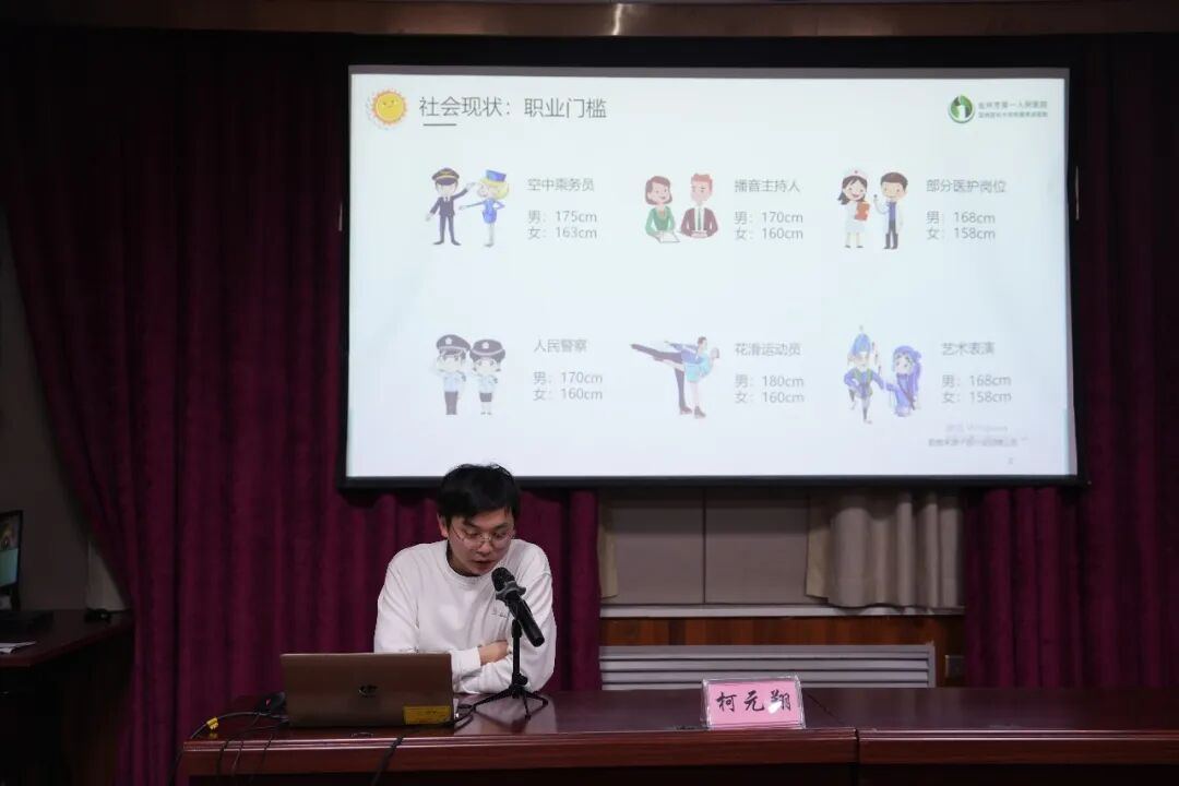 浙大邵逸夫阿拉尔医院新生儿科副主任柯元翔以《关注儿童身高关注儿童未来》为主题,从社会现状切入,分析了当前职业门槛、婚姻选择中身高因素的影响,剖析了身高发育对儿童心理、行为及社会能力的潜在影响。他深入浅出地讲解了儿童身高增长的生理机制、骨骺发育的重要性,以及遗传、激素、营养、运动、睡眠等多重因素对身高的综合作用。针对儿童身高发育过程中可能出现的健康问题,他重点介绍了矮小症的界定标准、生长规律及骨龄评估的重要性,澄清了“补钙即长高”“晚长不用急”等常见误区,强调科学干预、专科就诊、规范治疗的必要性。在治疗方面,他还特别提醒干部人才要警惕市场上各类“增高陷阱”,并就生长激素的剂型选择、使用时机及安全性等作了详细介绍。
