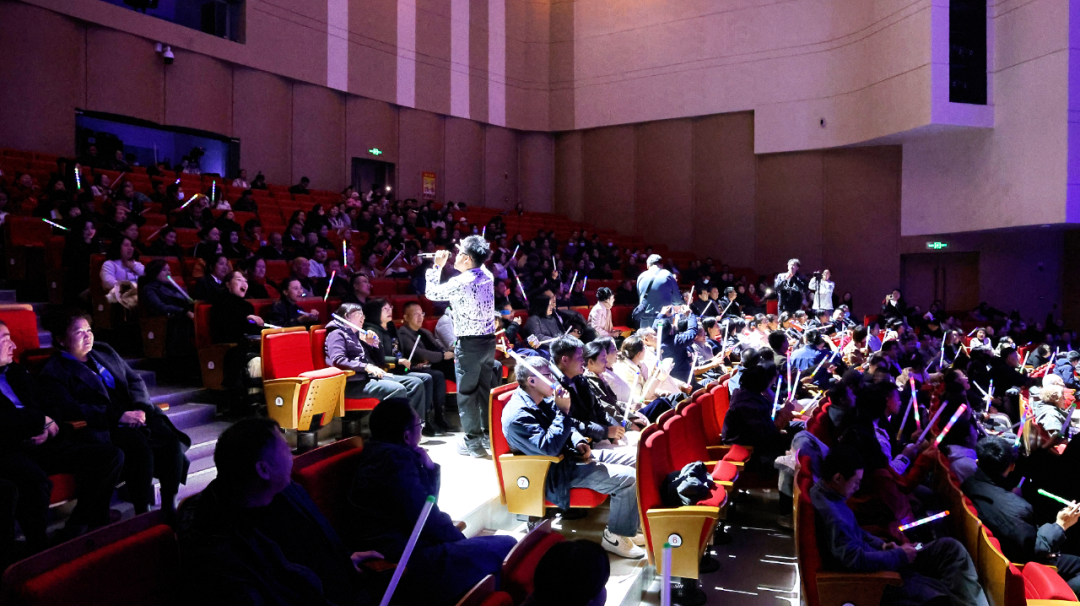 当《有多少爱可以重来》这首传唱度极高的歌曲旋律响起时,全场观众在演员的带领下开启大合唱模式,现场瞬间变成了欢乐的海洋。演出尾声,全体演职人员登台与观众共同唱响《大中国》和《相亲相爱》,深情激昂的歌声回荡在整个剧场,完美诠释了“民族团结一家亲”的深厚情谊,展现了京疆两地心手相连、共创未来的美好愿景。