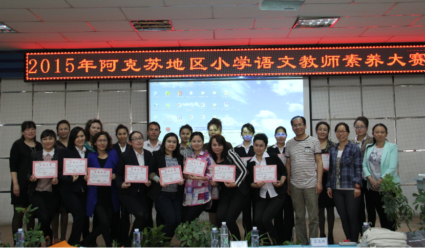 2015年4月,杭州援疆教师和少数民族教师徒弟共同参与比赛