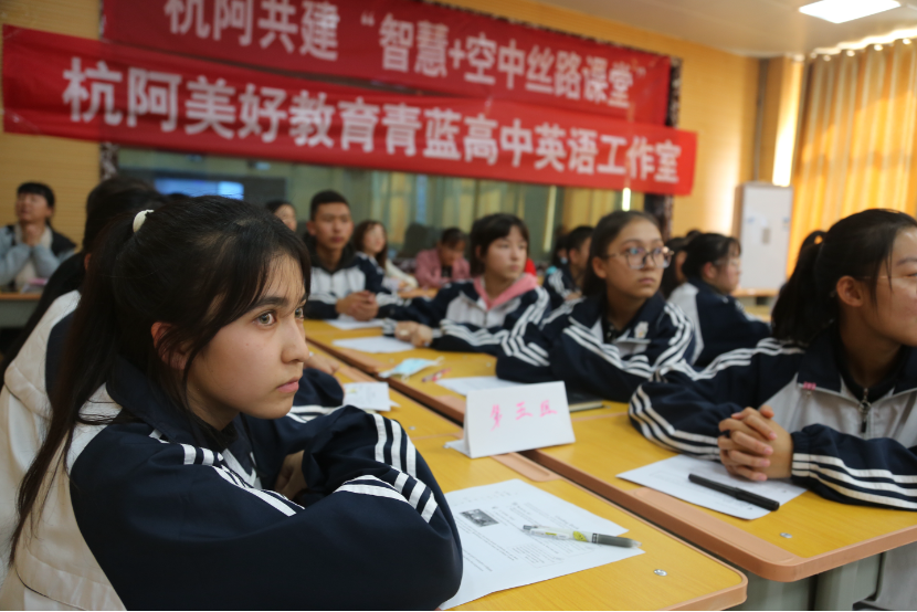 2021年11月,阿克苏市高级中学学生在杭阿共建“智慧+空中丝路课堂”上