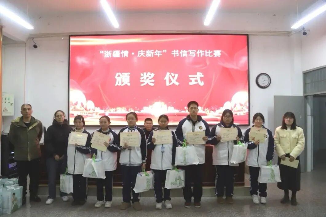 据悉,本次比赛以“庆新年”为核心,由庆元县集邮协会、庆元县诗词与楹联学会、庆元县濛洲高级中学、新和县实验中学联合举办,紧扣浙疆地方特色与民族团结主题,吸引两地5校(区)的高中生踊跃参与。两地共征集到200余篇作品,经专业评委公正评审,评出一等奖20名、二等奖30名、三等奖50名以及优秀指导老师奖18名,并异地同时举行颁奖仪式。两地学子的获奖作品将以书信的形式相互寄给对方。